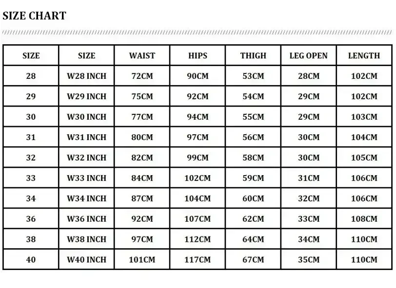 28, 29, 30, 31, 32, 33, 34, 36, 38, 40